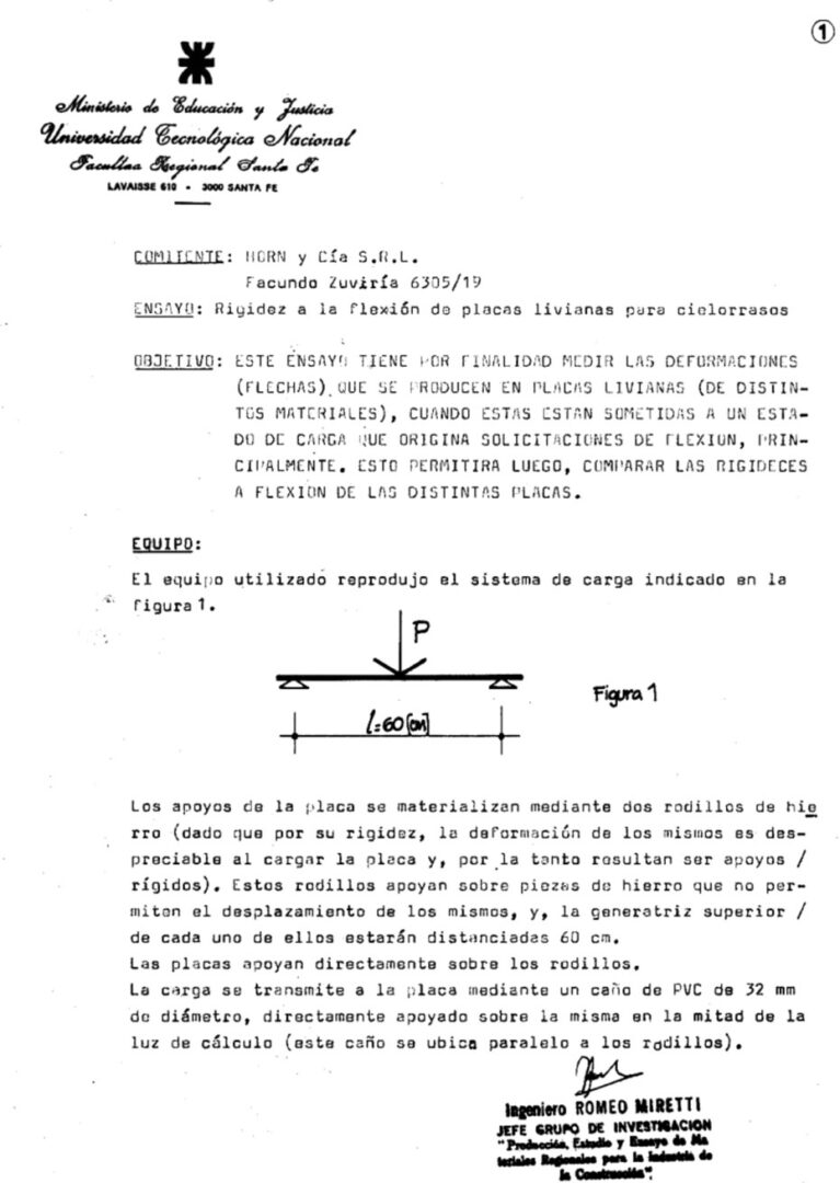 Ensayo de 1989, firmado por el Ing. Romeo Miretti.